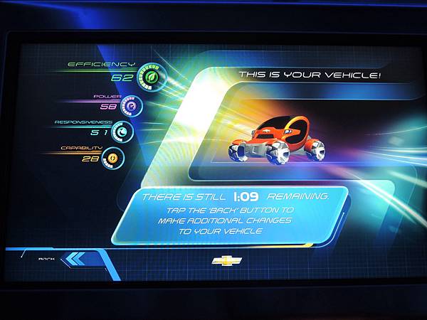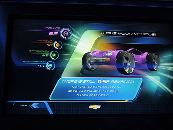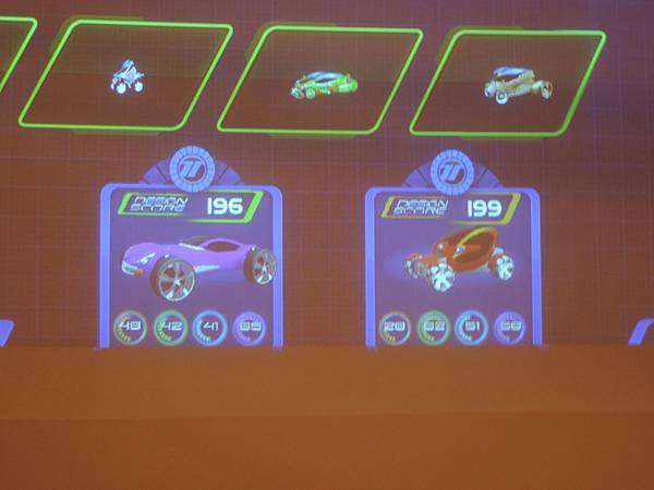 接著又去玩了「test track」,這是讓你自己設計你想要的車子,再和大家ㄧ起比賽車,我們對車都沒有很大的興趣,因此也覺得還好,但朋友的小孩覺得很好玩,玩三次都還不過癮,真的見人見智吧!