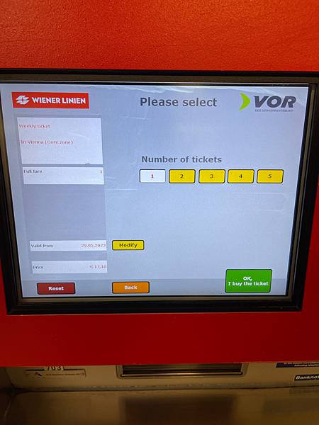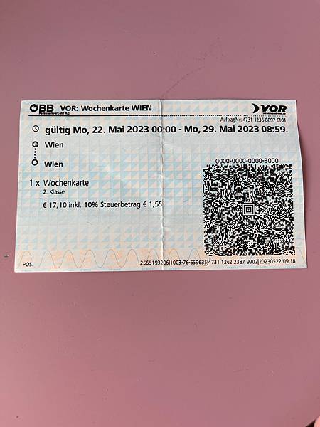 剛好我們是星期一到維也納 , 所以就買了7天(一週)的票,使用期限是到下個禮拜一的早上9點,這個時候我們已經離開奧地利了,充分使用 , 完全不浪費~