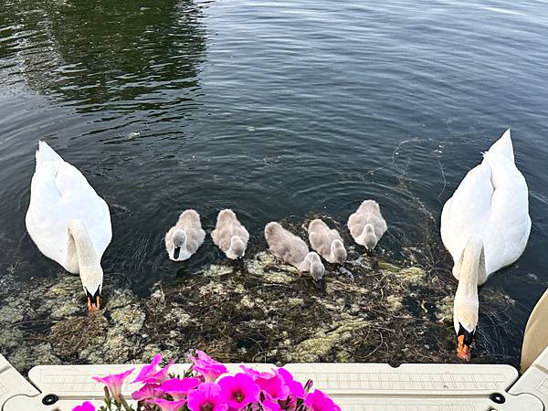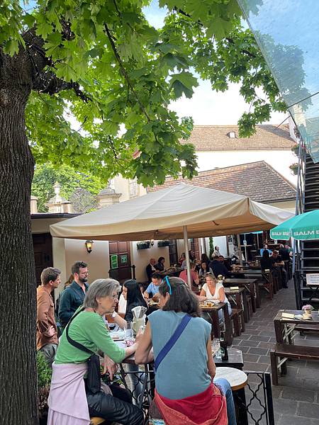 用餐環境寬廣舒適 , 大家都會選擇坐在戶外 , 吃完可以往餐廳裡面走,就到河邊 , 拍拍照欣賞多瑙河景 , 河裡的天鵝一家人很吸睛 ~
