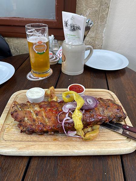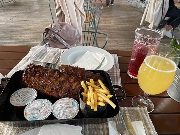 我們點了豬肋排和魚排,而且因為餐廳是酒廠改建,所以一定也要點杯啤酒試試看~