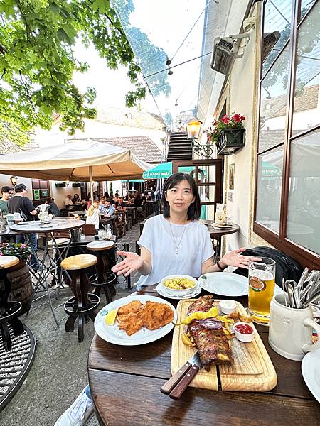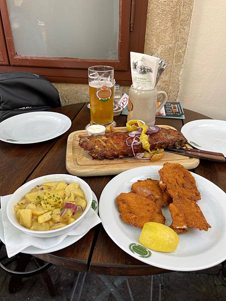 這家是老爺看到網路上有人分享當地人推薦平價好吃的餐廳, 位在美景宮附近 , 他們家有名的是豬肋排和德國豬腳~