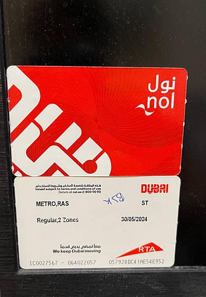NOL 紅卡(Nol Red Ticket):價格AED2,可以在卡片內儲存10次單程票,不用每次搭乘都買票